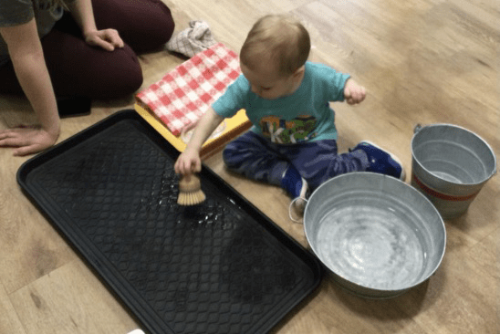 Children in our classrooms learn to take care of themselves and their environment through activities such as hand washing, dusting, and mopping which foster independence, concentration, and build motor skills.